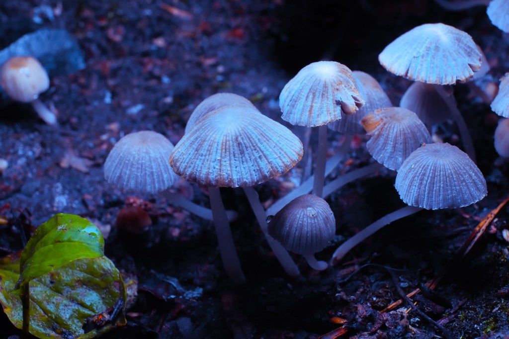 Toadstool psilocybin mushrooms under ultraviolet light. (Dmytri Steshenko, Shutterstock)